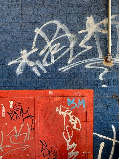 When I moved to Harlem on crutches, forced slowness became radical attention. I composed with rust, peeling posters, nails, and scaffolding, seeing elegance and order where others saw decay.